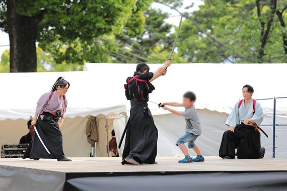 小田原市で毎年5月に行われる北條五代祭りにて、小田原城をバックに総勢、18名での殺陣の演舞を行う。子供たちの殺陣体験コーナーも大盛り上がりで、殺陣の楽しさをお客さんにも実感してもらえました。